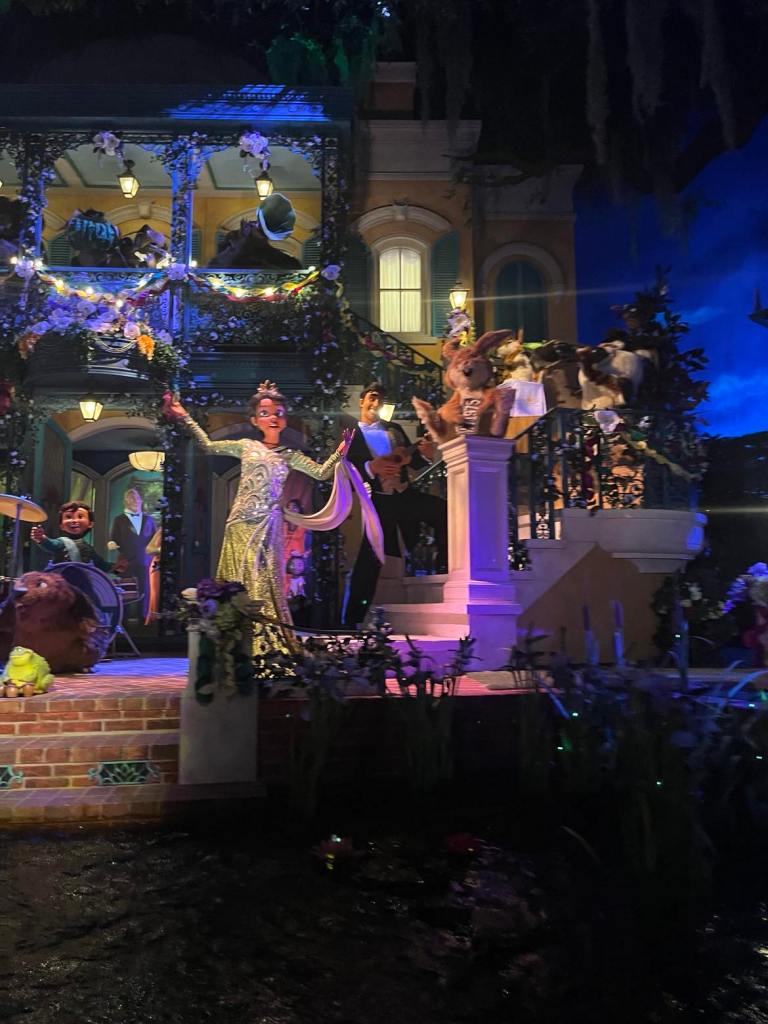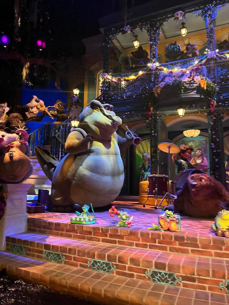The story could have been based on the film and not been an original concept. I believe the weakness is the missing villain, Dr. Facilier. By removing him from the story, it removes any sense of danger from a fifty-foot drop in a log. The original music is also better. The final scene is better on Tiana’s Bayou Adventure, but Zip-a-dee-doo-dah is a far superior closing tune.