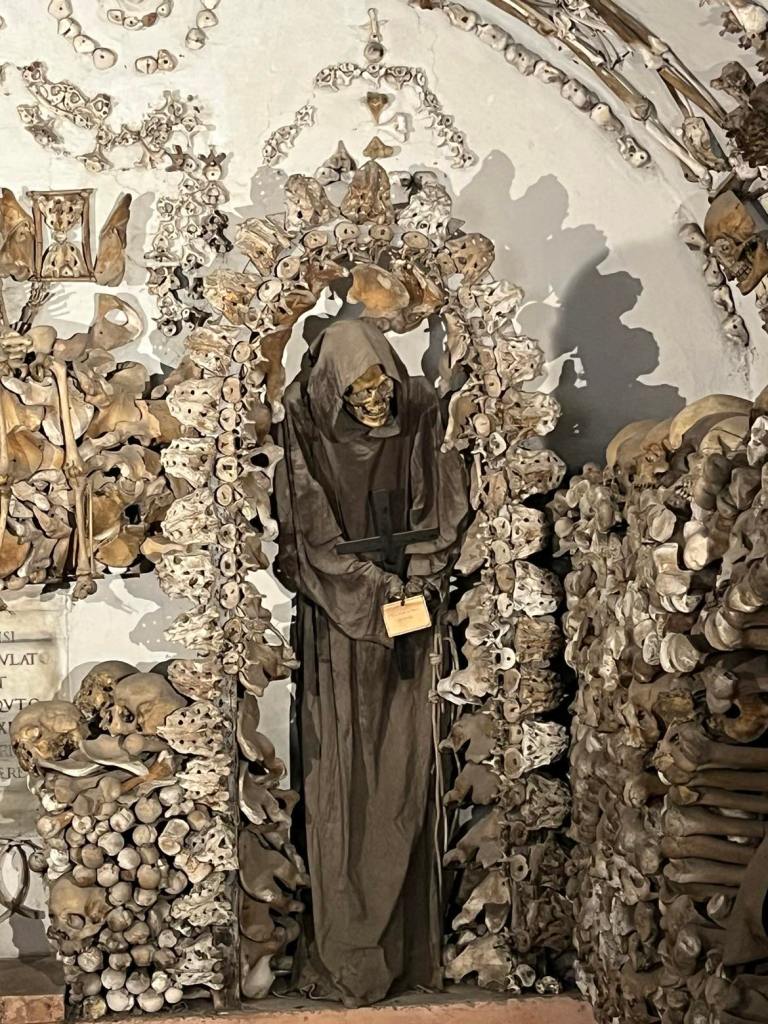 Number one on my list is visiting any of the Roman catacombs. These burial places for Christians had to be outside the city walls. In fact, no person could be buried inside the city walls, not even the emperor, and most citizens were cremated. It is advisable to book a tour because of the distance needed to travel to visit the different catacomb locations. We explored two places, and the experience was very humbling. The picture is from the crypt at the Santa Maria dell’Orazione e Morte. The remains inside the crypt are displayed artistically, and the rooms are themed. One is the Pelvis Room, with wall decorations made from hundreds of pelvic bones. The catacombs are a solemn location, and no pictures are allowed inside. Most of the bodies there had been removed, but some still remain at rest in their tomb.