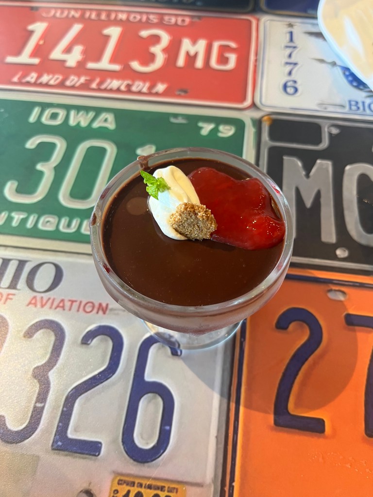 The shake was good, but I’m not sure it was $7 good (it was actually $9.17 after taxes and added gratuity). The other two desserts weren’t anything to write home about. The mousse was a basic chocolate mousse with a tiny dab of the strawberry coulis and a few graham cracker crumbs. The bread pudding was tasteless unless you covered your bite in the caramel whiskey sauce. The problem was that you ran out of the sauce after a few bites. Overall, I give the desserts a below-average rating.