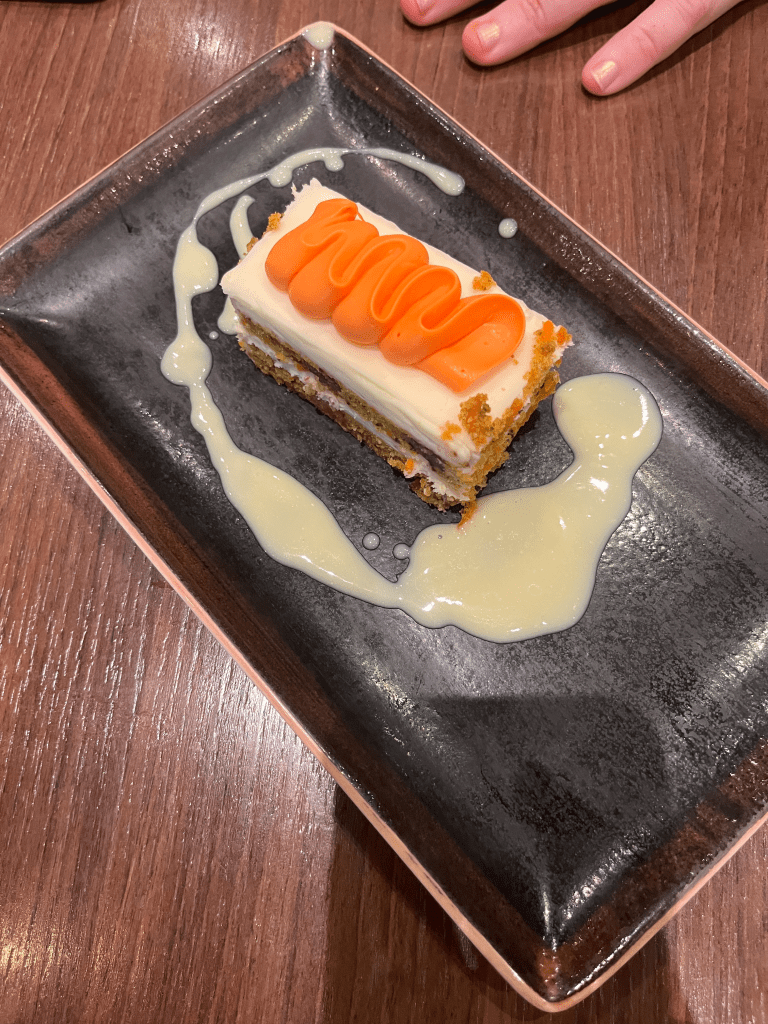 The desserts were the only weak point. We tried the carrot cake and the chocolate sundae. The carrot cake was super rich and too sweet for my tastes, especially for a piece of cake cut from a mass-produced sheet. The sundae mainly consisted of vanilla ice cream with a light touch of chocolate syrup at the very bottom of the dish. It wasn’t terrible, but it was nothing to write home about either.
